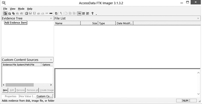 The Forensic Toolkit (FTK) from AccessData is another popular forensic tool that is widely used by law enforcement. Once you have connected the suspect drive to the forensic machine, you simply have to add evidence, as shown in FIGURE 4-11.