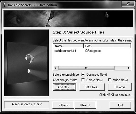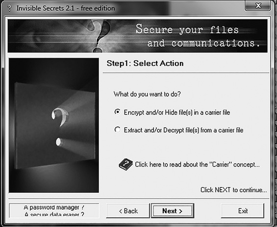 In this section, you’ll learn about Invisible Secrets, which is very inexpensive and has a free trial version. It is also easy to use.