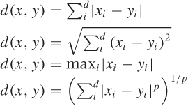 Another property I look for determines whether data is “mixable.” Can I combine arbitrary multiples of data points to construct a new data point? For data to be mixable in this way, it is not enough to be able to combine data points (e.g., concatenating two strings) I must also be able to combine arbitrary multiples of all data points. If I can do this, then I can construct a new data point that lies, for example, “halfway” between the original ones, like so: x/2 + y/2. Being able to construct new data points in this way can speed up certain algorithms (see Chapter 13 for some applications).