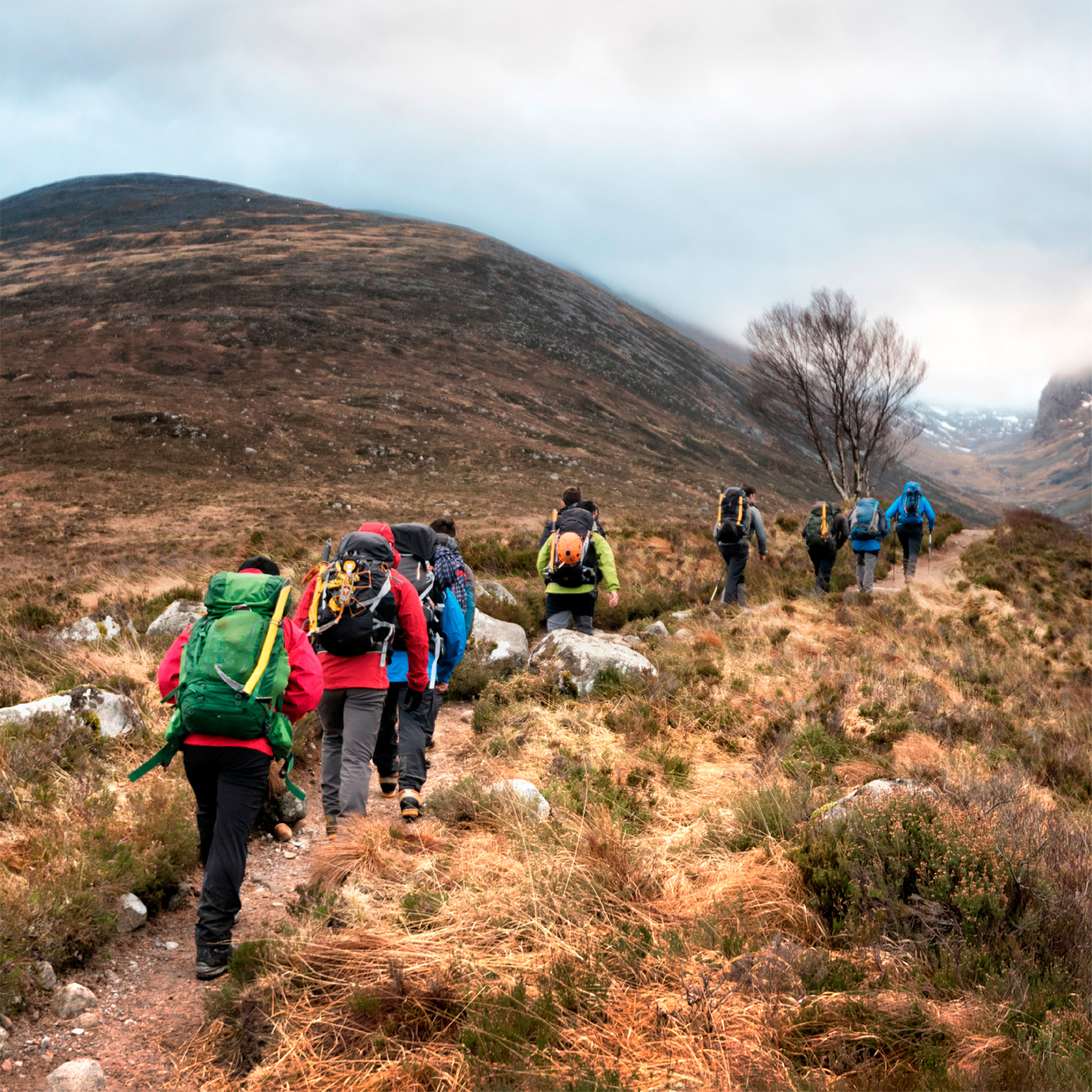 t Hikers walking through Glen Nevis towards the summit of Ben Nevis