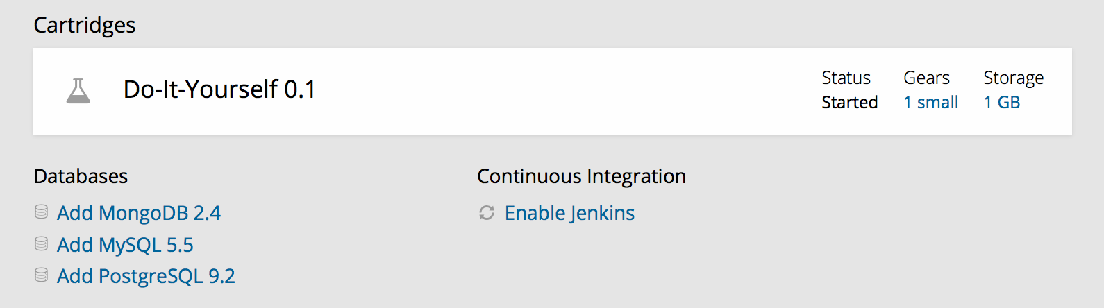 A gear on OpenShift is the server container where your application is hosted. OpenShift currently offers three types of gears, depending on your needs.