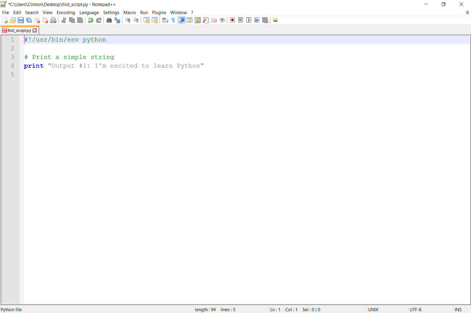 >>> print("I'm excited to learn Python.")