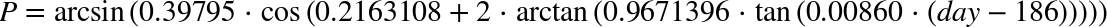 Here’s a somewhat more complicated formula―determining the amount of sunlight in a day, given the day of year and the latitude of your location.