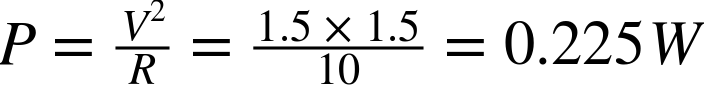 With V=1.5V and R of 100Ω the power is 1.5V x 1.5V / 100Ω = 22.5mW.