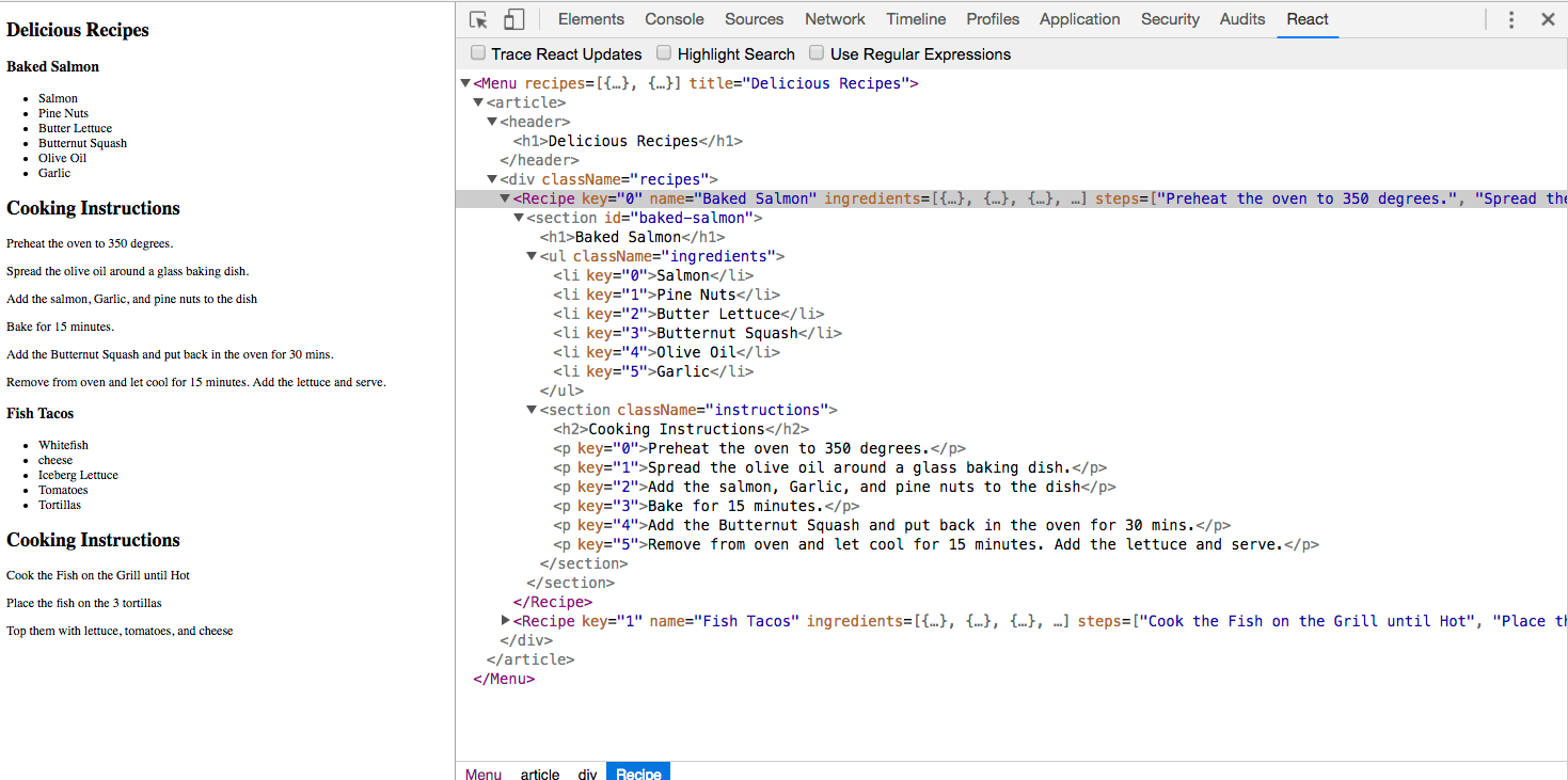 This is a plugin that can extend the functionality of the browser’s developer tools. It creates a new tab in the developer tools where you can view React elements.