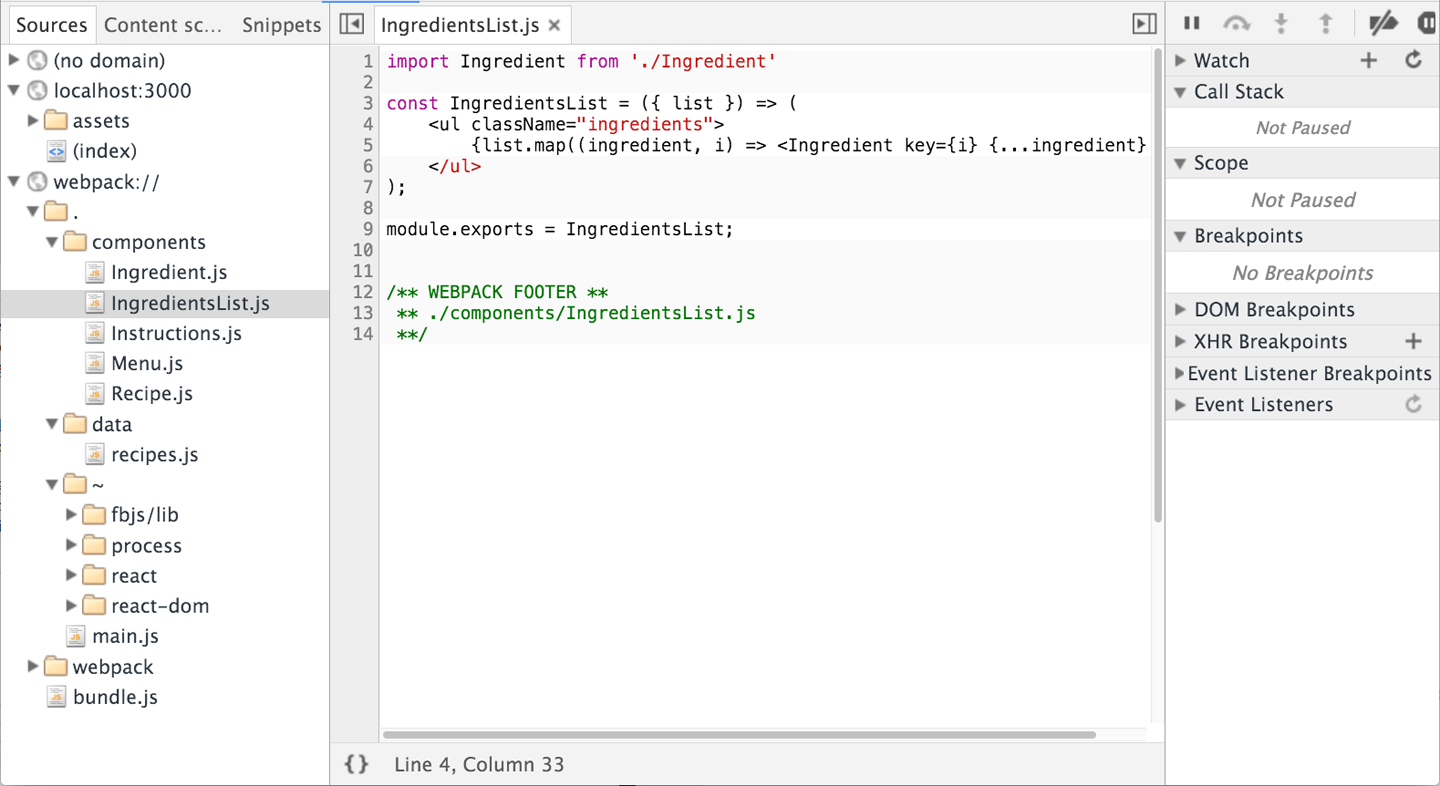 Now when webpack runs, it will not include the CSS in the JavaScript bundle; it will instead extract all of the CSS into a separate file, ./assets/bundle.css.