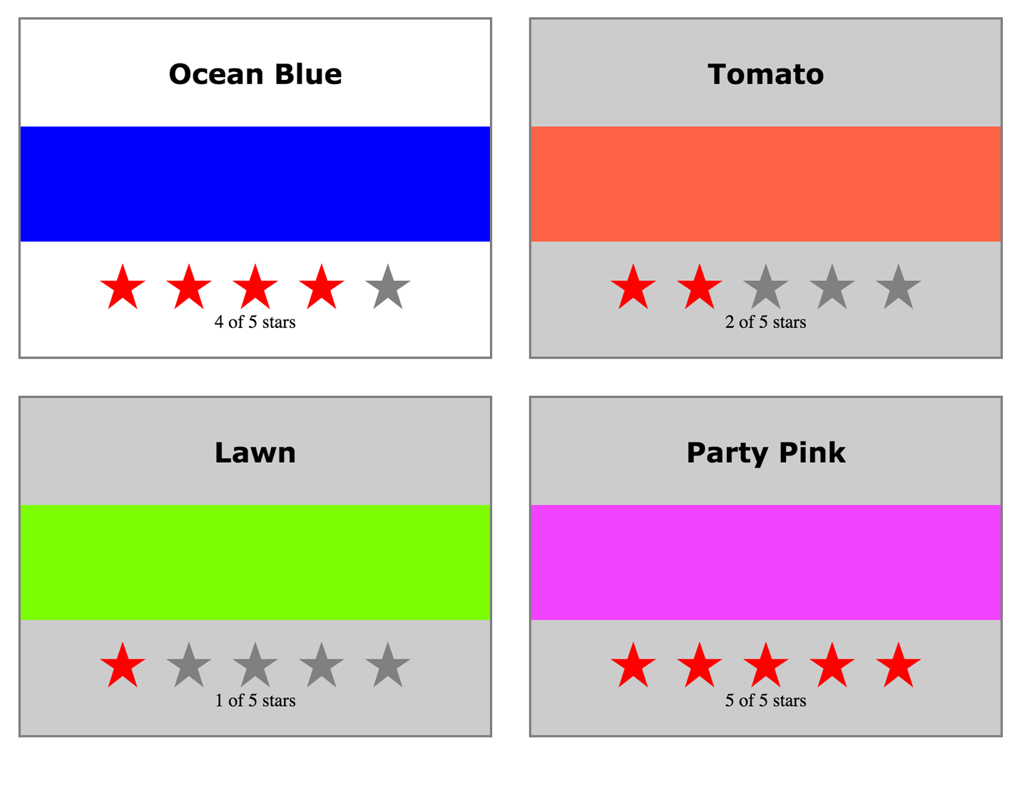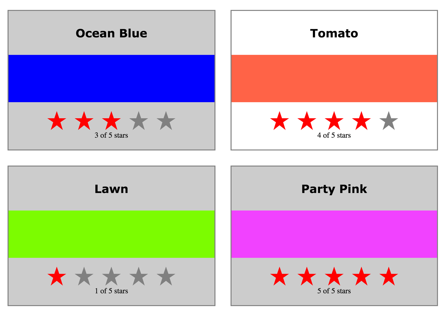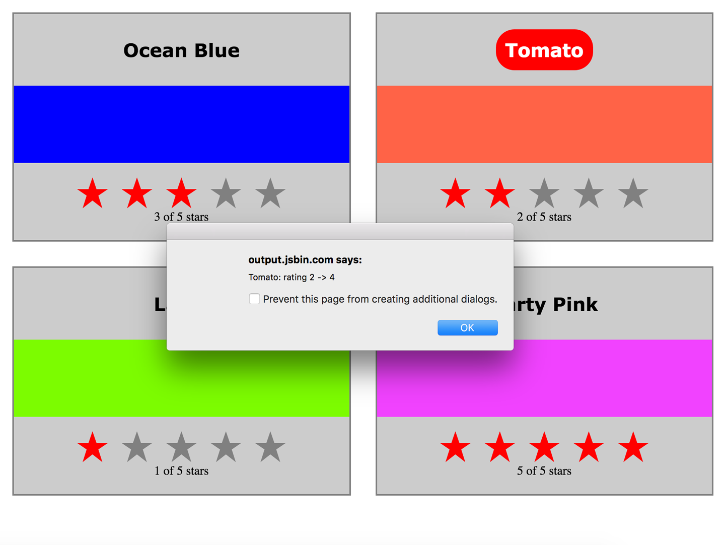 GET '/colors'Responds with the current color array from the server’s state. This route is added just so we can see the listed colors; it is not used by the frontend.