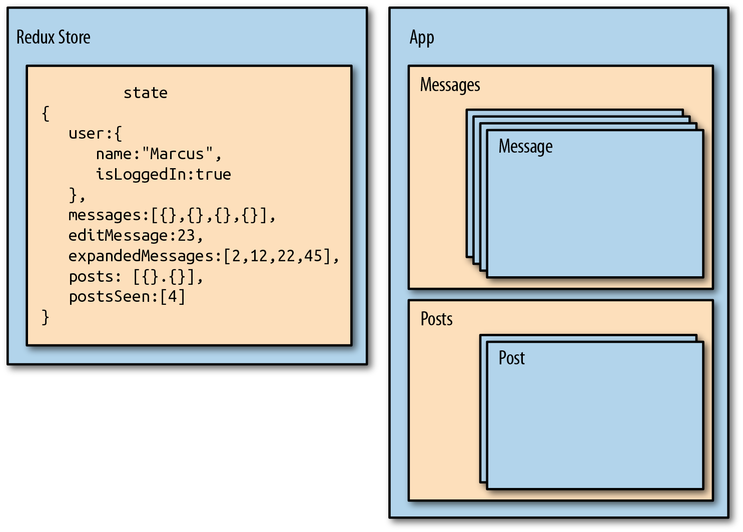 In this next section, we will not only make sure that this data gets saved on the server, we will make sure that the action objects themselves are created on the server and dispatched to both stores.