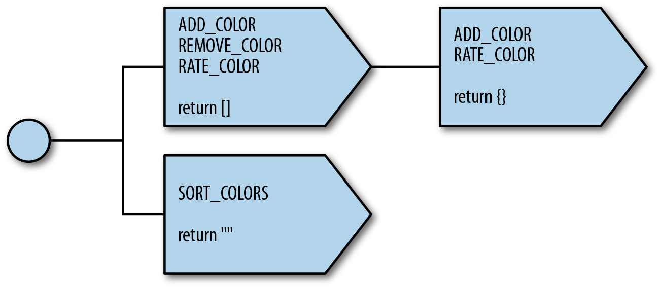 Let’s take a look at an example of the complete process for dispatching an ADD_COLOR action in the proposed solution: