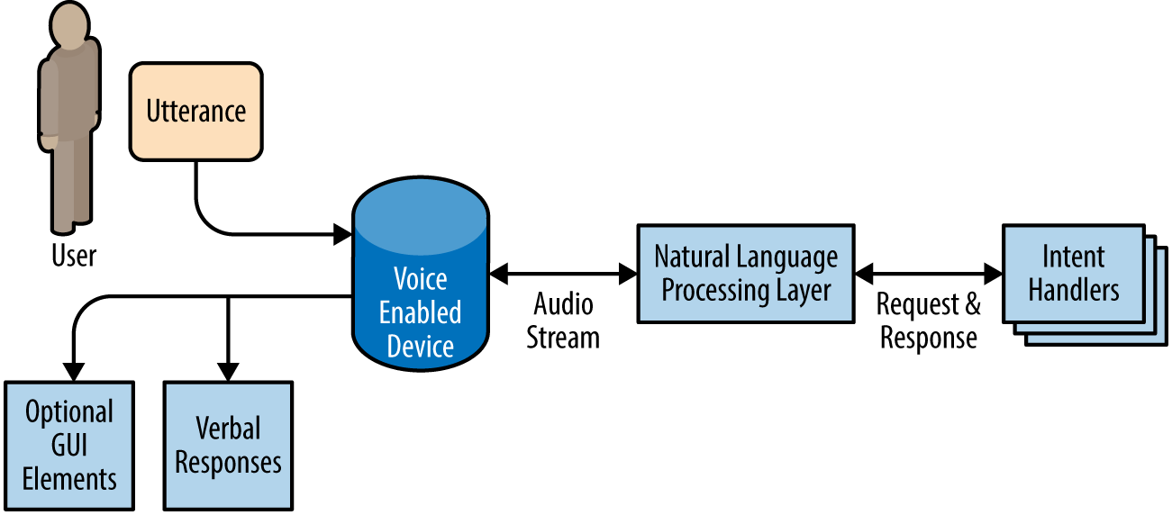 We will attempt to limit general theories, design patterns, and high-level overviews of voice interfaces and IoT to Chapters 1 and 2, while focusing on actual hands-on development and implementation in the subsequent chapters. With this in mind, feel free to jump to Chapter 3 to start coding or continue reading here for a primer on voice interfaces and the Internet of Things—we’ll look at how they complement each other and most importantly, some design principles to help you create pleasant, non-annoying conversational voice experiences.