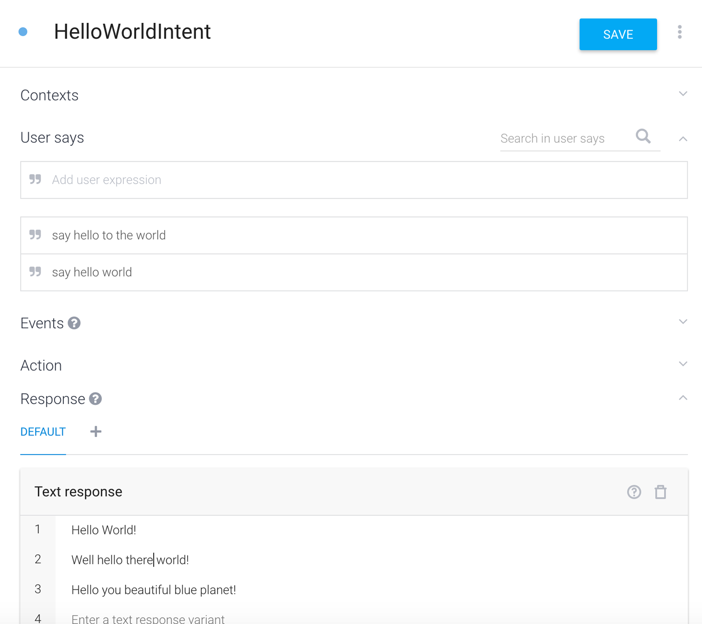 While in debug mode, speak the word “Hal” into the microphone. You should hear a “Yes?” response from the device. Once you hear “Yes?”, say the following into the mic: Say ‘Hello’. You should then hear the device reply with one of the response phrases created in API.AI. If everything worked as planned, pat yourself on the back—you just created a voice-activated app on IoT Core running on a Raspberry Pi!