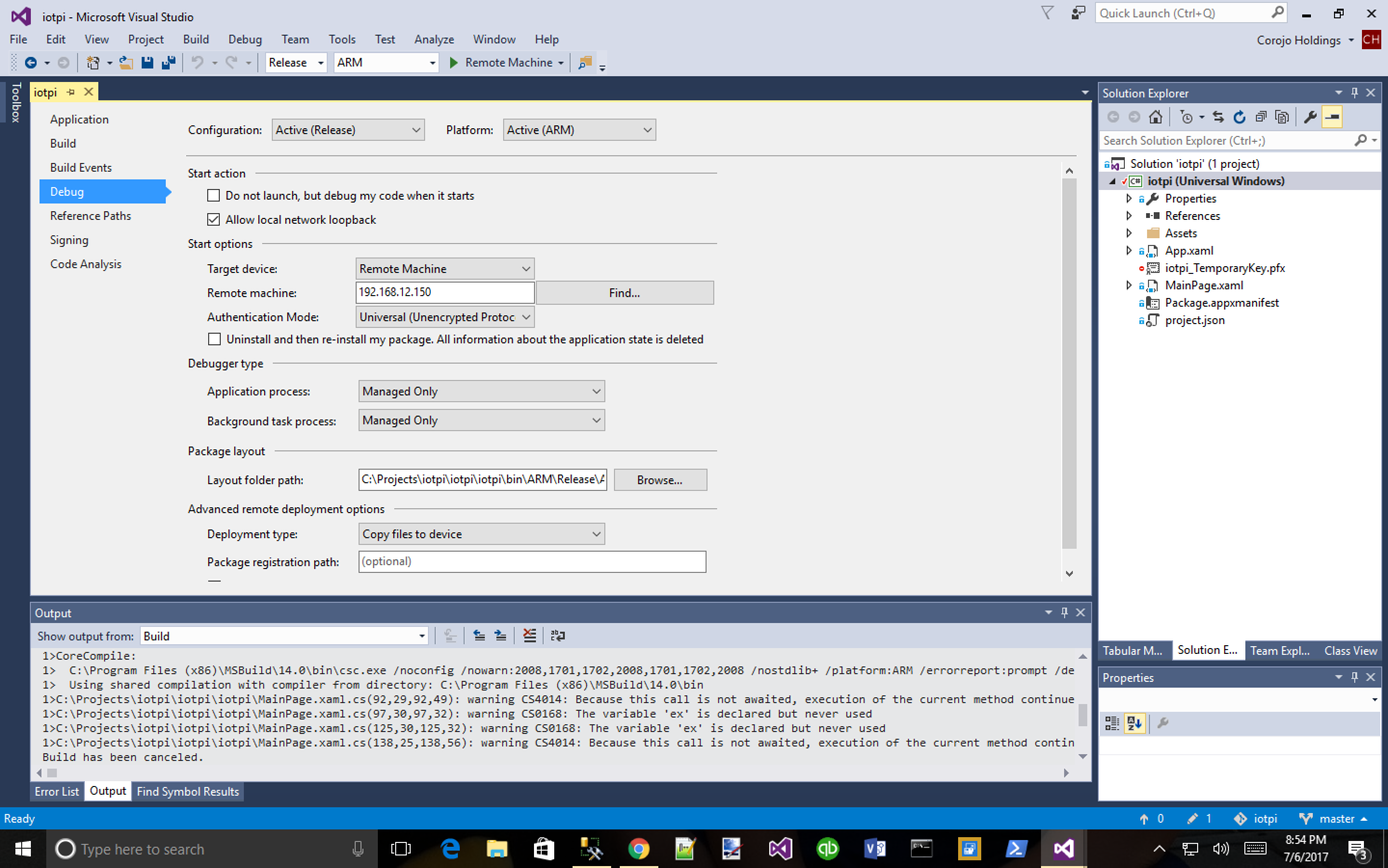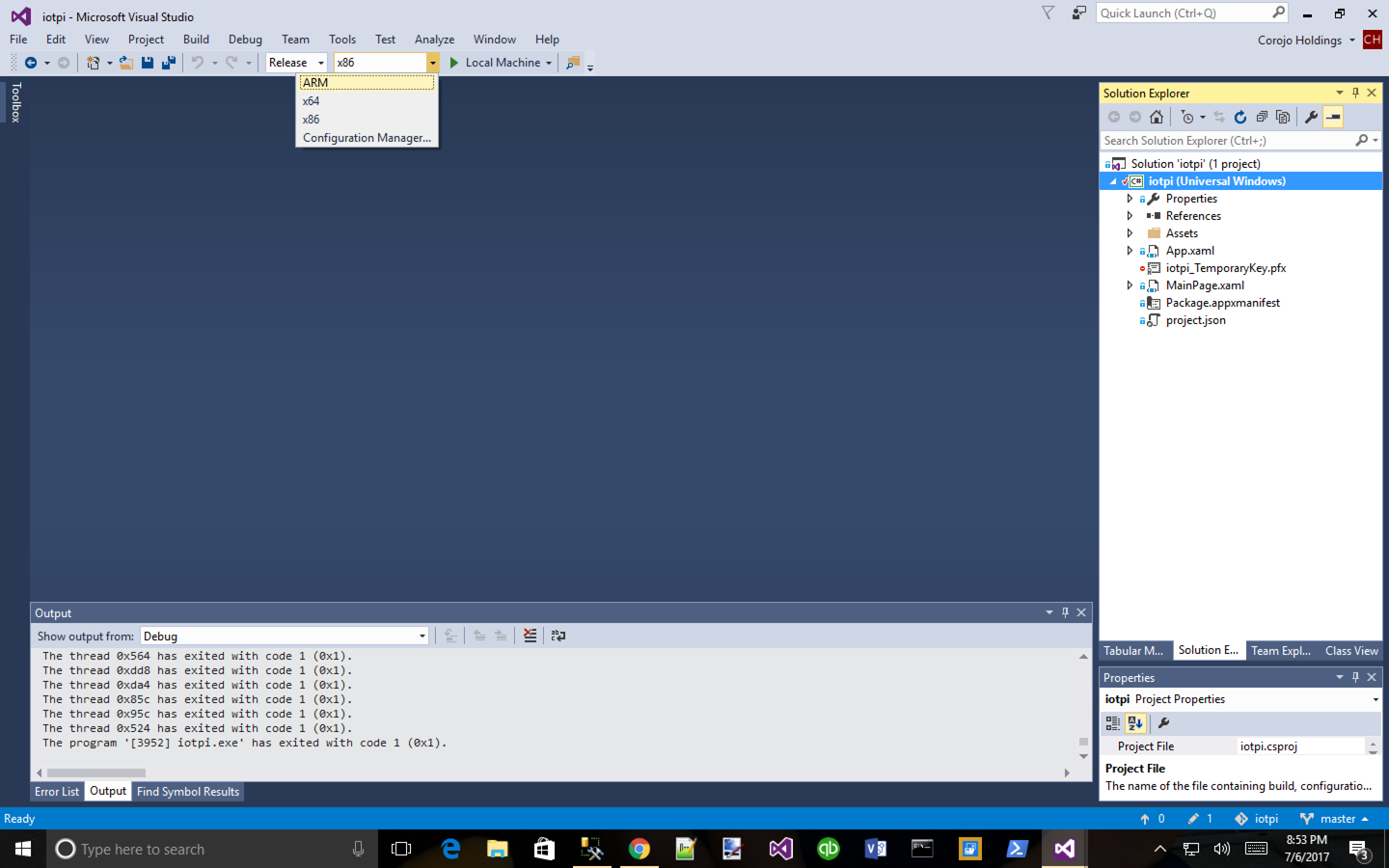 Now that we have reviewed the critical elements of our code, we are ready to take it for test drive. As mentioned earlier, you can choose to simply deploy and run our project to your IoT Core Pi, or copy and paste our code into your project.