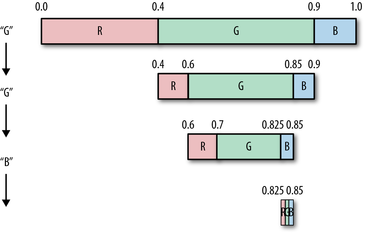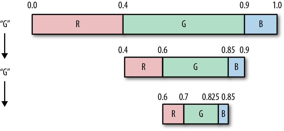 Algorithms that weave together multiple symbols and statistical tables or models in order to identify the least number of bits needed to encode the next symbol.