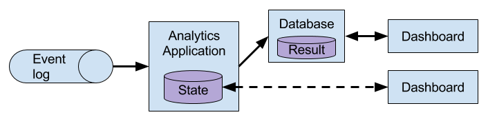 You are probably not surprised that stateful stream processing is the right technology to build low-latency analytics pipelines. Instead of waiting to be periodically triggered, a streaming analytics application continuously ingests streams of events and maintains an updating result by incorporating the latest events with low latency. This is similar to view maintenance techniques that database systems use to update materialized views. Typically, streaming applications store their result in an external data store that supports efficient updates, such as a database or key-value store. Alternatively, Flink provides a feature called queryable state which allows users to expose the state of an application as a key-lookup table and make it accessible for external applications. The live updated results of a streaming analytics applications can be used to power dashboard applications as shown in Figure 1-6.