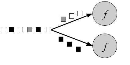 Data exchange strategies define how data items are assigned to tasks in a physical dataflow graph. Data exchange strategies can be automatically chosen by the execution engine depending on the semantics of the operators or explicitly imposed by the dataflow programmer. Here, we briefly review some common data exchange strategies, as shown in Figure 2.3.