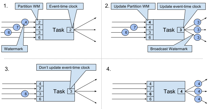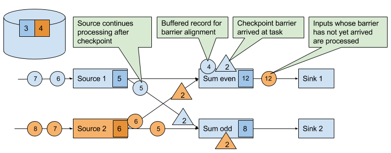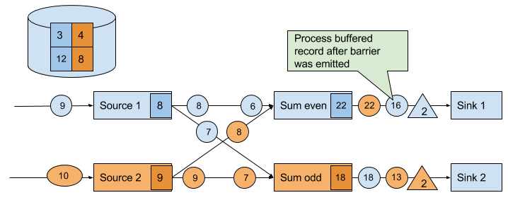 Note that the interval is in specified in milliseconds. Upon receiving a latency marker, all operators except sinks forward it downstream. Latency markers use the same dataflow channels and queues as normal stream records, thus their tracked latency reflects the time records wait to be processed. However, they do not measure the time it takes for records to be processed or the time that records wait in window buffers until they are processed.