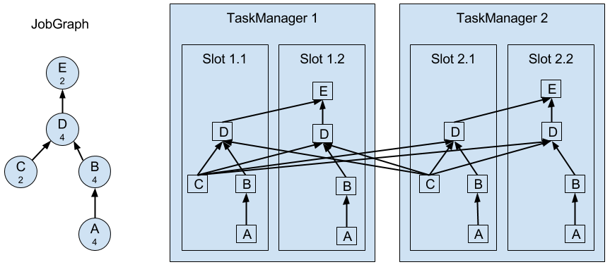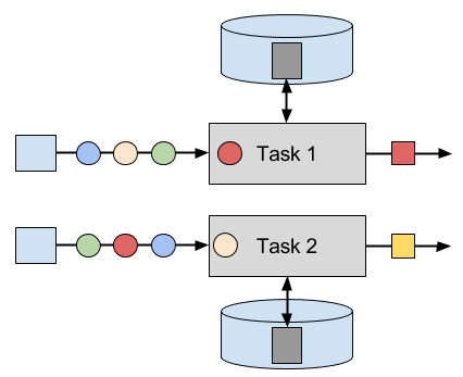 You can exploit parallelism in dataflow graphs in different ways. First, you can partition your input data and have tasks of the same operation execute on the data subsets in parallel. This type of parallelism is called data parallelism. Data parallelism is useful because it allows for processing large volumes of data and spreading the computation load across several computing nodes. Second, you can have tasks from different operators performing computations on the same or different data in parallel. This type of parallelism is called task parallelism. Using task parallelism you can better utilize the computing resources of a cluster.