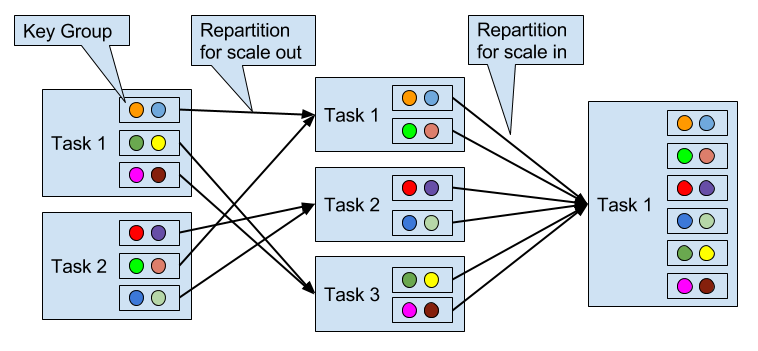 The forward strategy and the random strategy can also be viewed as variations of the key-based strategy, where the first preserves the key of the upstream tuple while the latter performs a random re-assignment of keys.