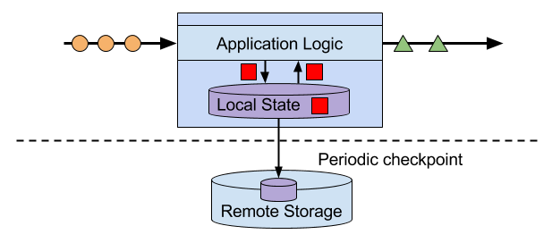 Any application that processes a stream of events and does not just perform trivial record-at-a-time transformations needs to be stateful, i.e., have the ability to store and access intermediate data. When an application receives an event, it can perform arbitrary computations that involve reading data from or writing data to the state. In principle, state can be stored and accessed in many different places including program variables, local files, or embedded or external databases.