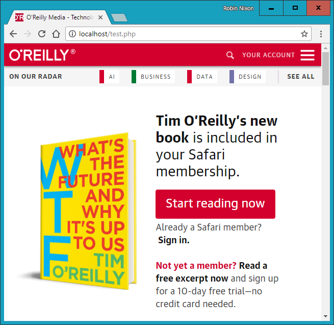 Note how for purposes of layout in a web page, I’ve used the <pre> HTML tag to preserve all the spaces and the \n newline character after each of the lines to be displayed. The output from this example is as follows: