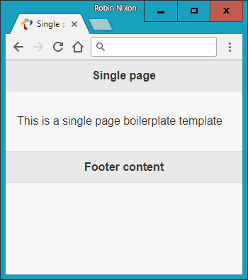 Upon examining the previous example, you’ll see that it starts with the standard HTML5 elements you would expect. The first unusual item you may notice is in the <head> section, namely the viewport setting within the <meta> tag. This line tells mobile browsers to set the width of the displayed document to that of the web browser, and to start off without the document zoomed either in or out. When displayed in a browser, the page looks like Figure 22-1.