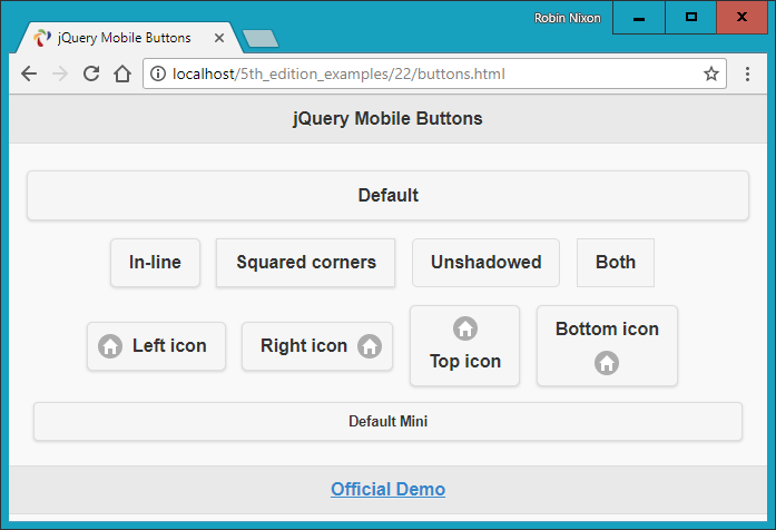 There’s actually a great deal more styling you can do with buttons, and you can get all the details you need in the Buttons demo. But for now, this introduction will stand you in good stead.
