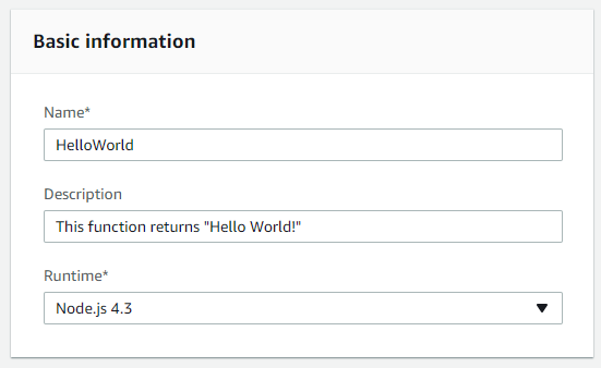 We’re going to create a very simple AWS Lambda Function that returns the phrase “Hello World” whenever the function is called by the HelloWorldIntent.
