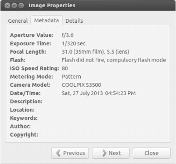 Fig. 23.1 shows the metadata of a photograph taken by a Nikon Coolpix S3500 camera. A
