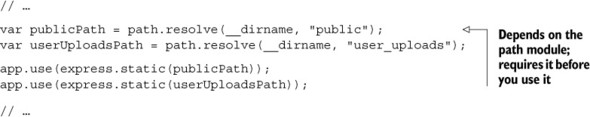 Recall that path.resolve helps keep your path resolution cross-platform (things are different on Windows and Mac and Linux). Also recall that this is much better than doing it all yourself. If any of this is unclear, refer to chapter 2.