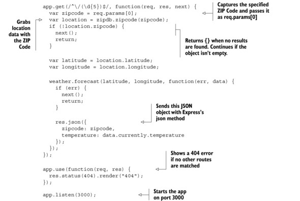 I could fill hundreds of pages with more examples, but I won’t. The key takeaway here: you can use regular expressions to define your routes.