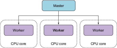 Because masters and workers run in separate operating system processes, which is necessary if they’re to run on separate cores, they can’t share state through global variables. But the cluster API does provide a means for the master and workers to communicate.