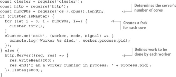 Now that you know how to keep your application running regardless of crashes and server reboots, the next logical concern is performance. Node’s cluster API can help with this.
