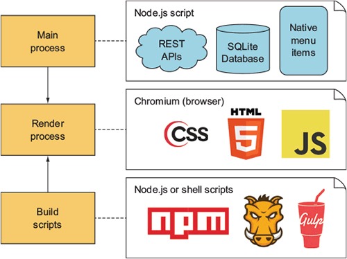 Electron, originally known as Atom Shell, enables you to build desktop applications with web technology. The application and user interface are left up to you to create with HTML, CSS, and JavaScript, but some of the “hard parts” of desktop software are provided for you. These include the following: