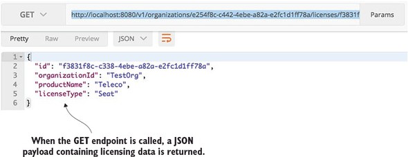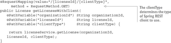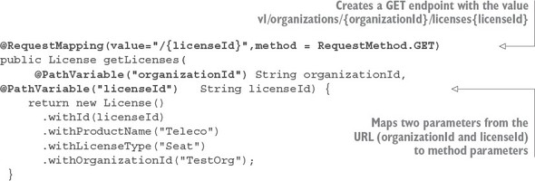 Listing 4.6. getLicense() function will use multiple methods to perform a REST call