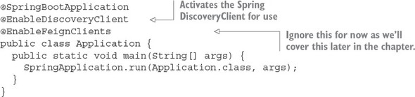 Listing 4.7. Setting up the bootstrap class to use the Eureka Discovery Client