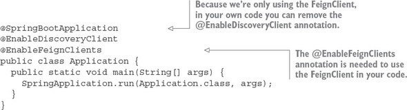Listing 4.11. Enabling the Spring Cloud/Netflix Feign client in the licensing service