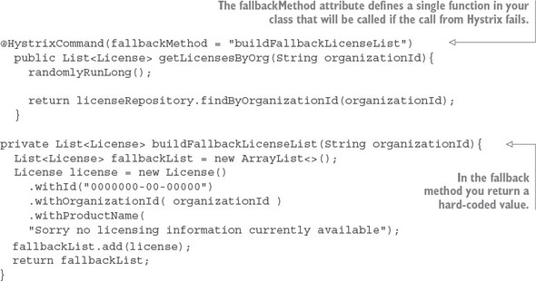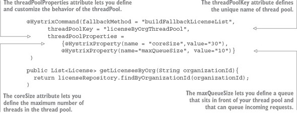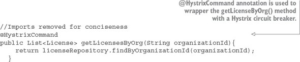 Listing 5.6. Creating a bulkhead around the getLicensesByOrg() method