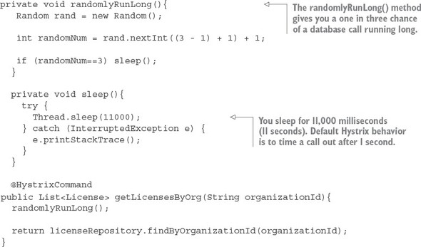 Listing 5.3. Randomly timing out a call to the licensing service database