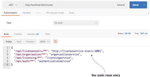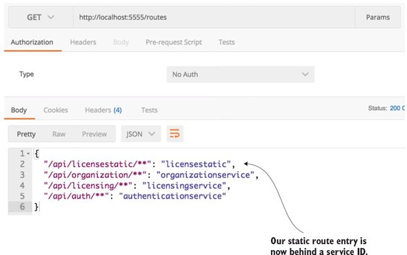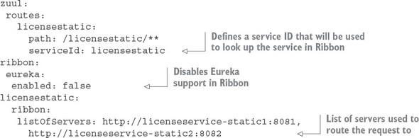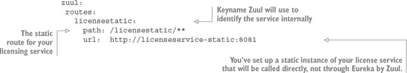 Listing 6.5. Mapping licensing service statically to multiple routes