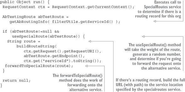 Listing 6.15. The run() method for the SpecialRoutesFilter is where the work begins