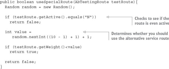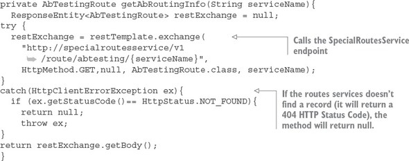 Listing 6.16. Invoking the SpecialRouteservice to see if a routing record exists