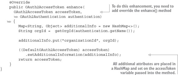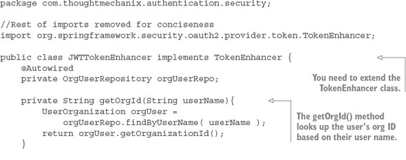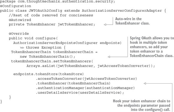 Listing 7.12. Using a JWT token enhancer class to add a custom field