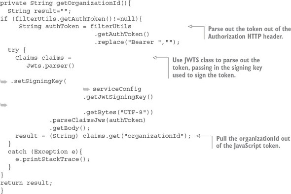Listing 7.14. Parsing the organizationId out of your JWT Token