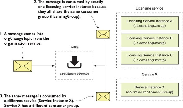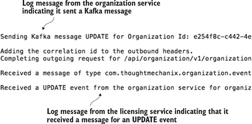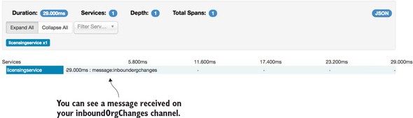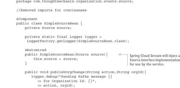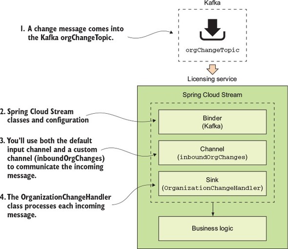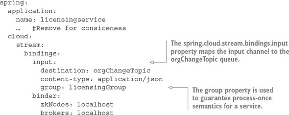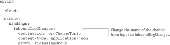 Listing 8.6. Mapping the licensing service to a message topic in Kafka