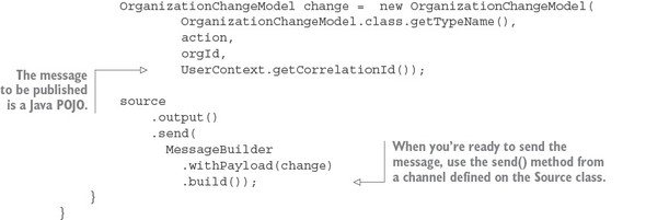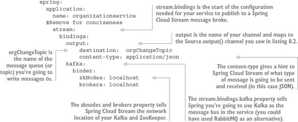 Listing 8.3. The Spring Cloud Stream configuration for publishing a message