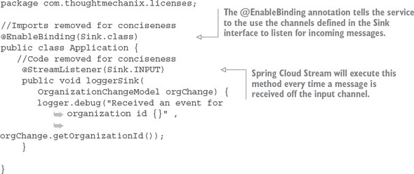 Listing 8.5. Consuming a message using Spring Cloud Stream