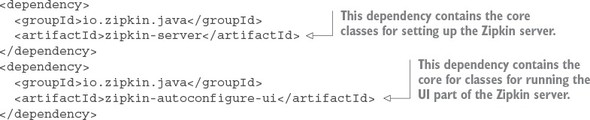 Listing 9.4. JAR dependencies needed for Zipkin service