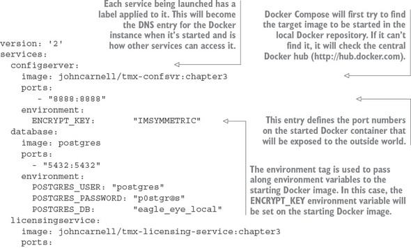 Listing A.4. The docker-compose.yml file defines the services that are to be launched