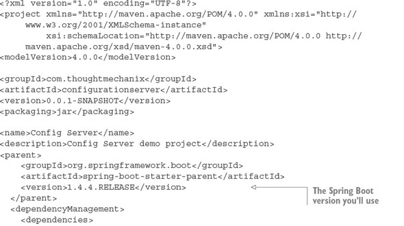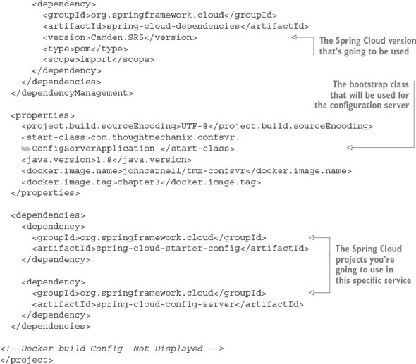 Listing 3.1. Setting up the pom.xml for the Spring Cloud configuration server