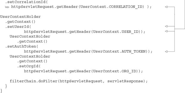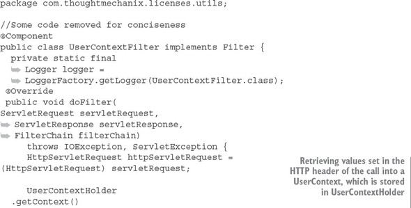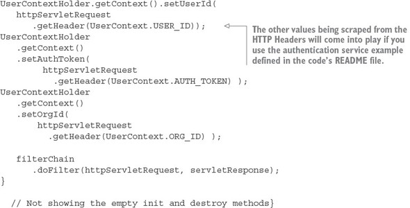 Listing 5.8. The UserContextFilter parsing the HTTP header and retrieving data